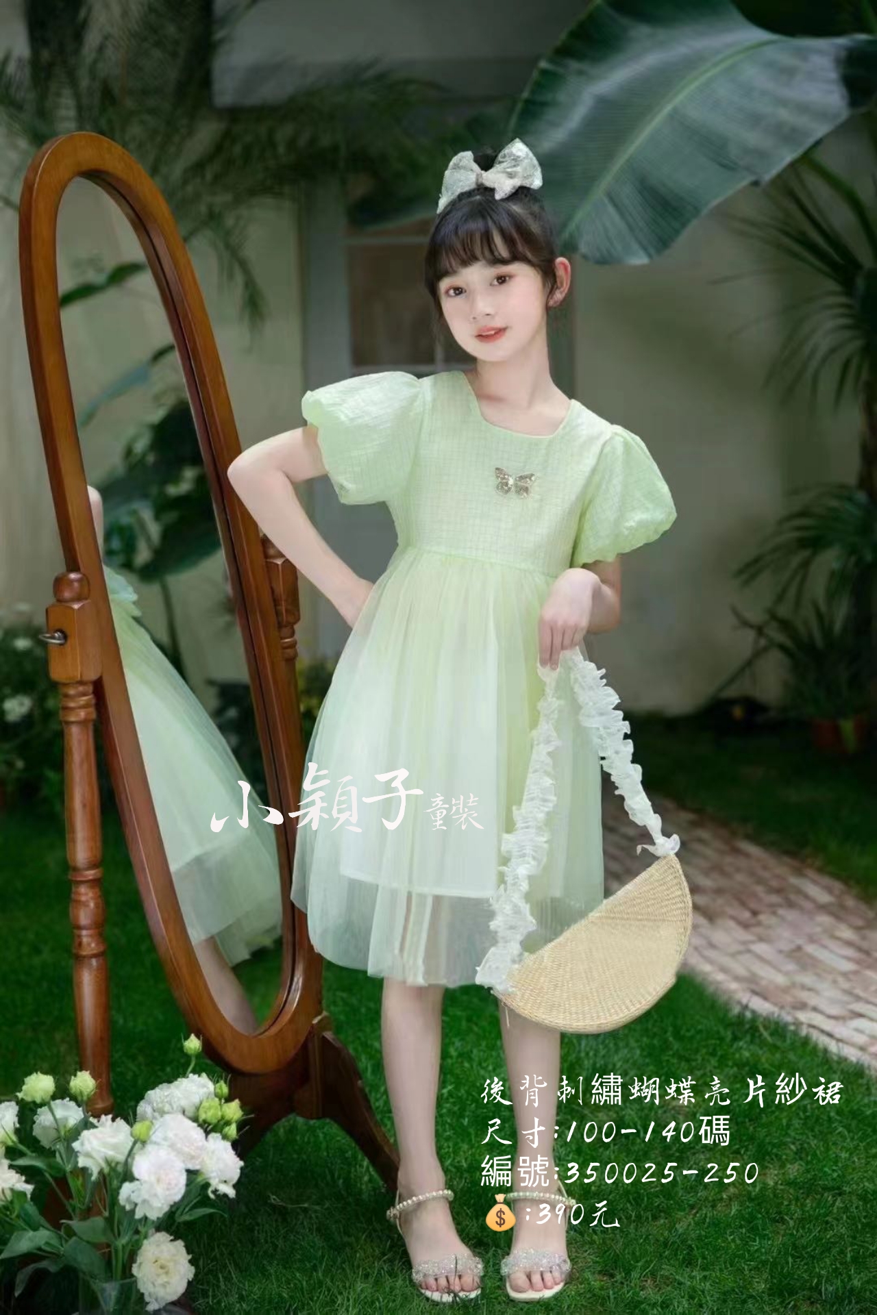 / 【台灣現貨】中大童後背刺繡蝴蝶亮片紗裙