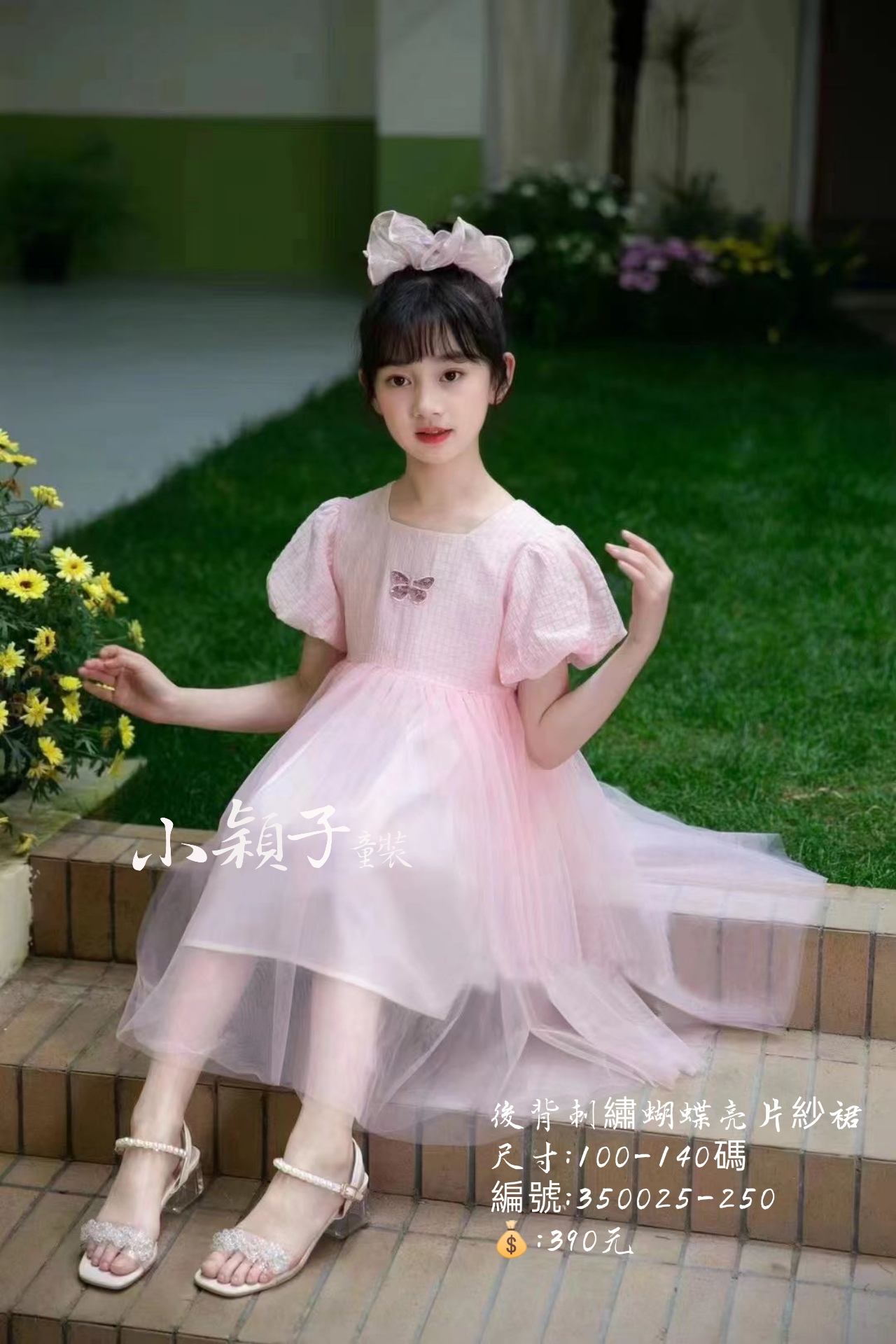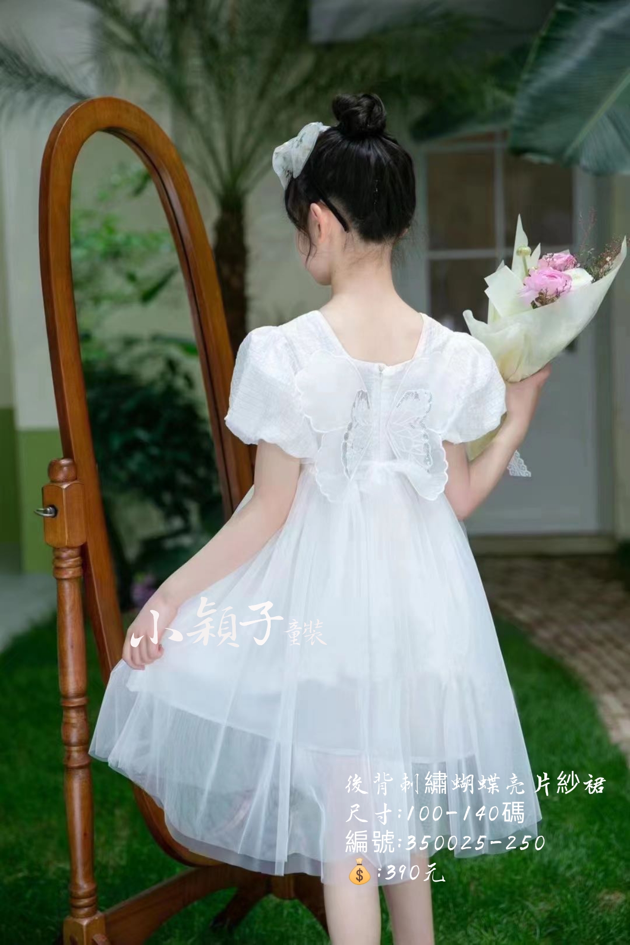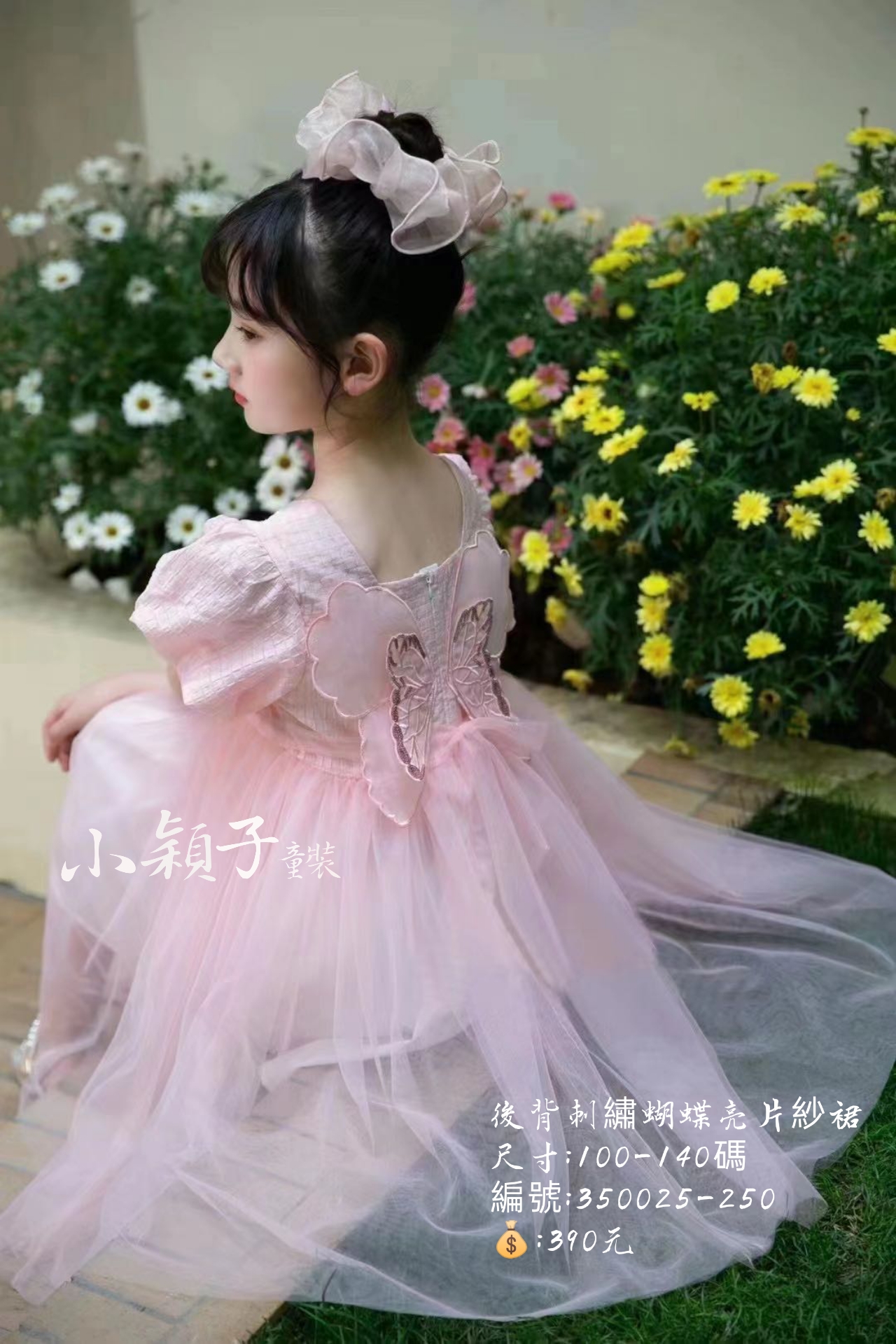 【台灣現貨】中大童後背刺繡蝴蝶亮片紗裙 數量