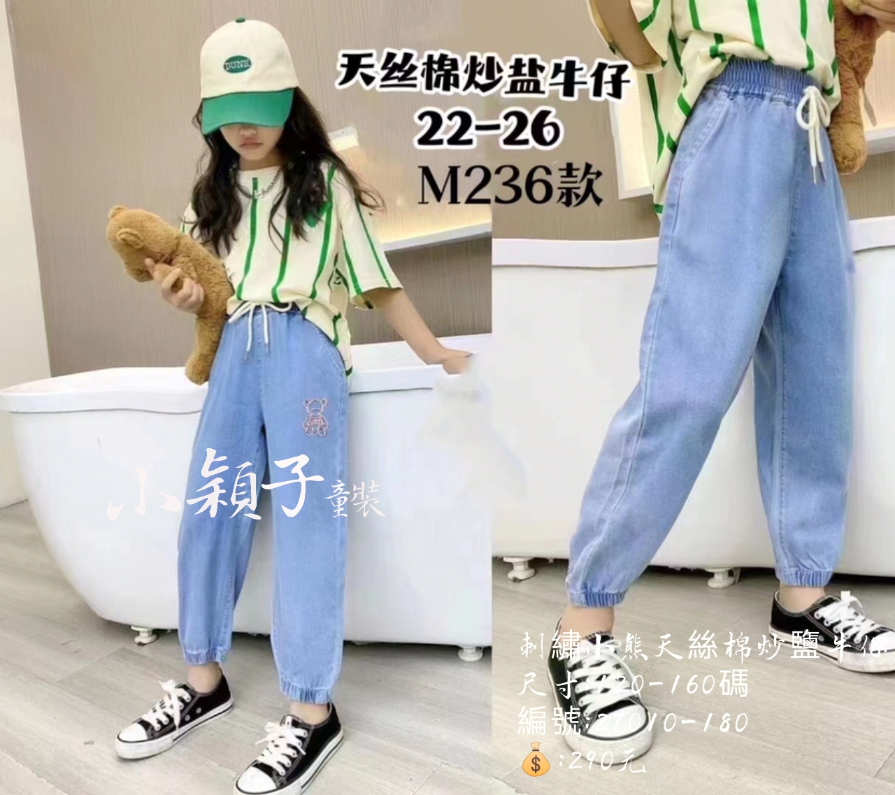 【台灣現貨】中大童 男女童刺繡小熊天絲棉炒鹽牛仔 數量