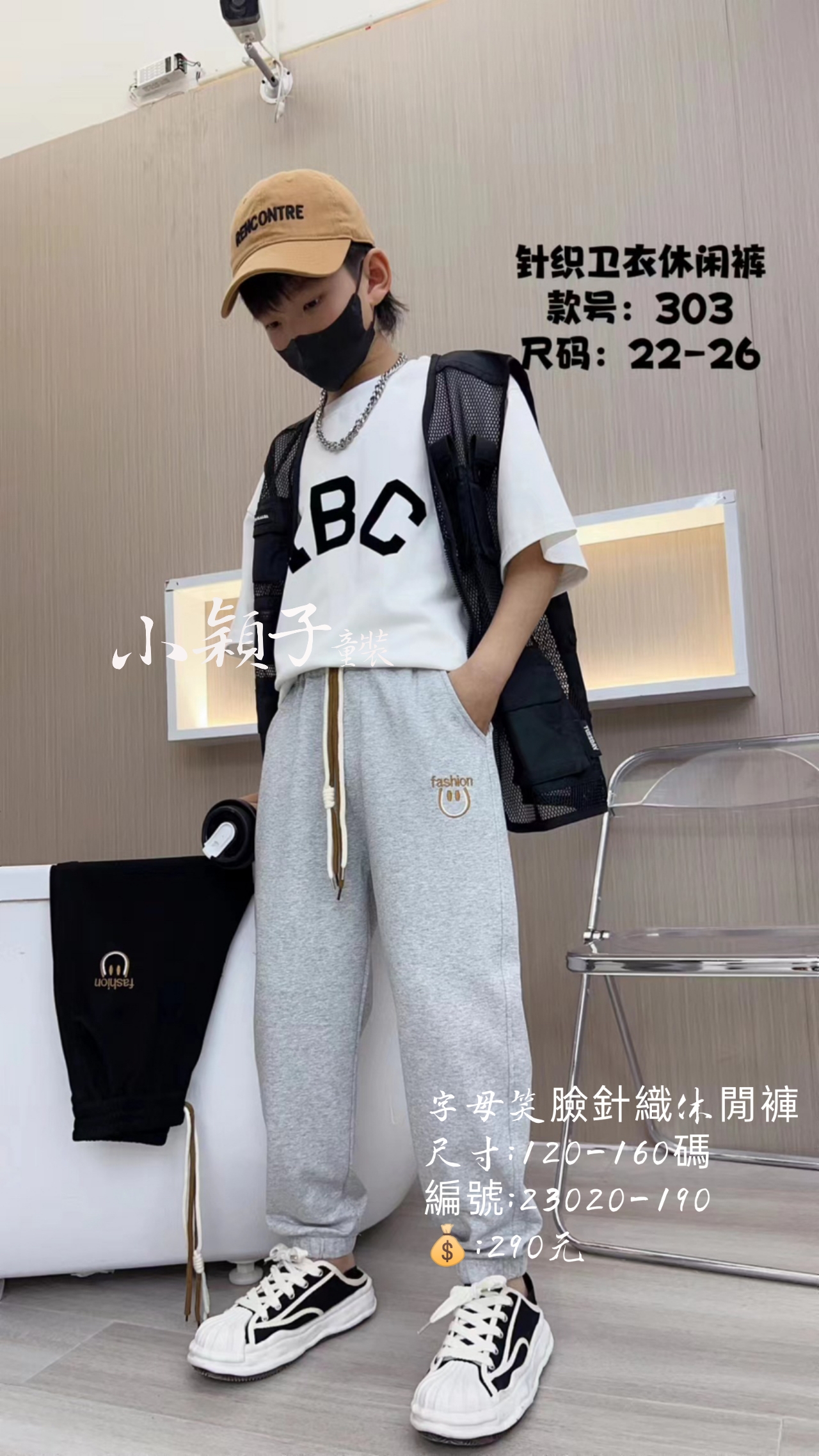 【台灣現貨】中大童 男女童字母笑臉針織休閒褲 數量