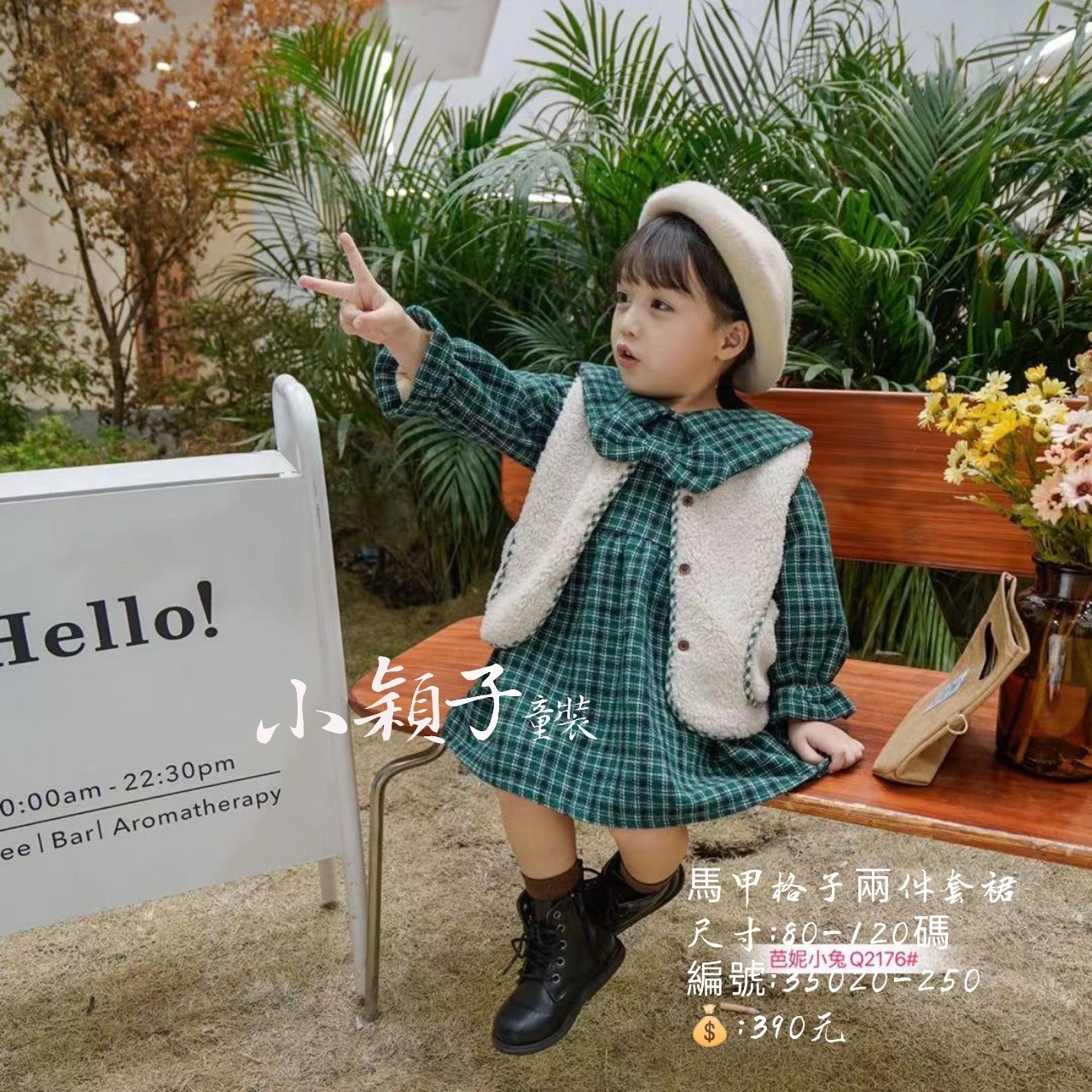 【台灣現貨】中小童新款馬甲格子兩件套裙 數量