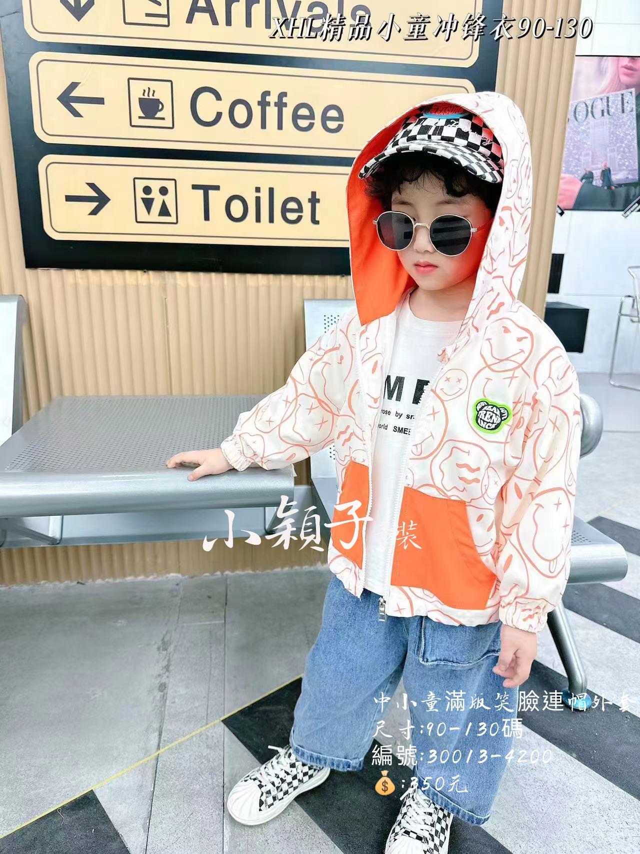 / 【台灣現貨】中小童滿版笑臉連帽外套