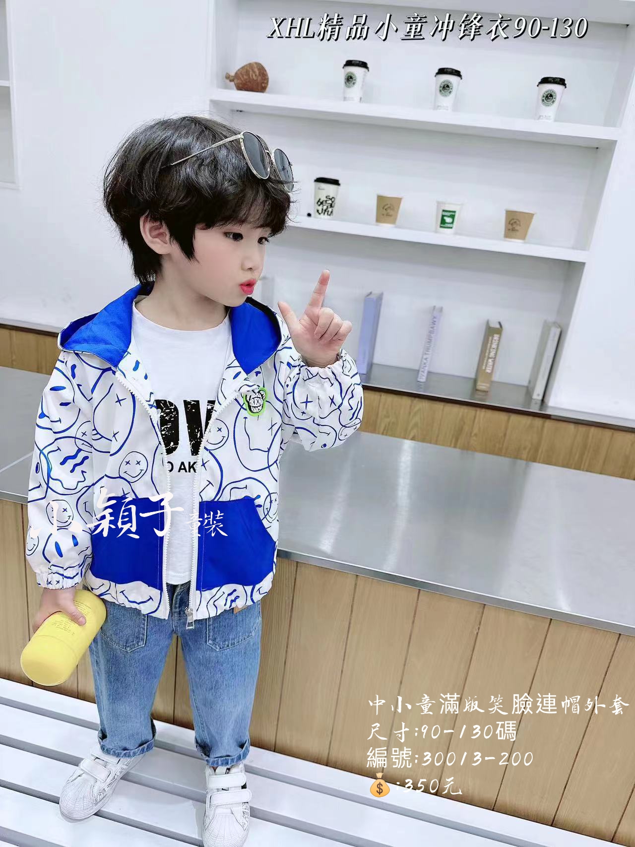 【台灣現貨】中小童滿版笑臉連帽外套 數量