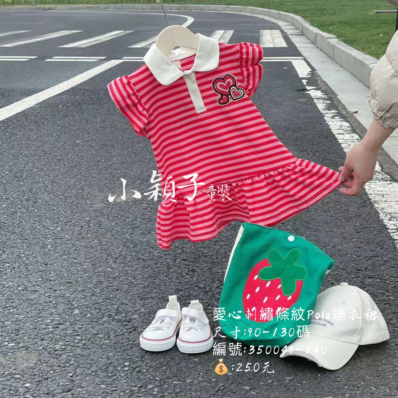 【台灣現貨】中小童 女童愛心條紋Polo連衣裙 數量