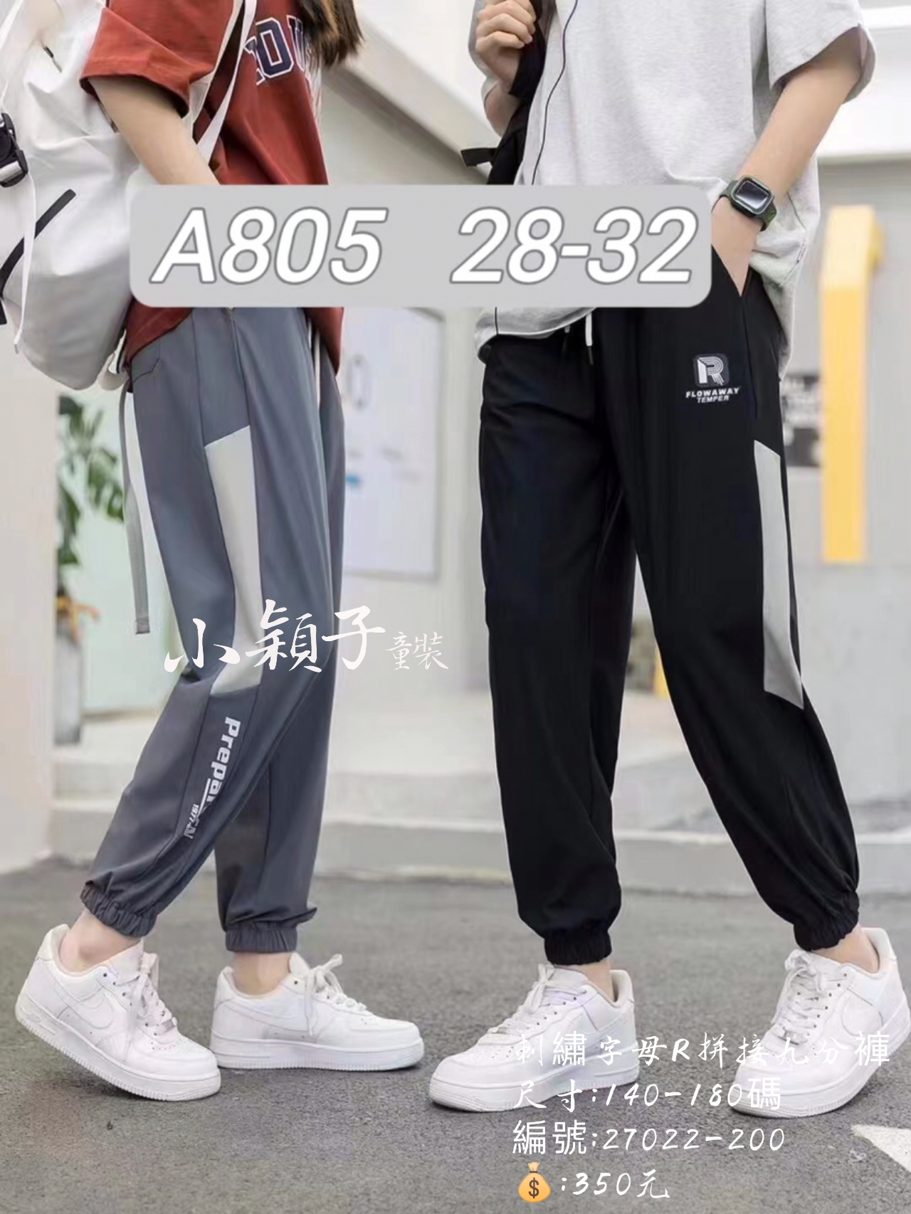 【台灣現貨】大童 男女童刺繡字母R拼接九分褲 數量