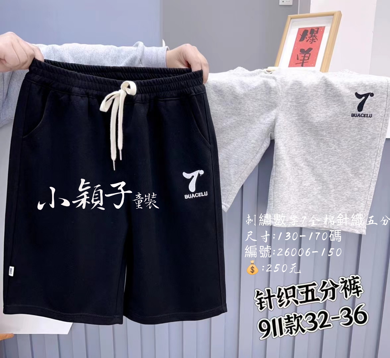 【台灣現貨】大童 男女童刺繡數字7全棉針織五分褲 數量