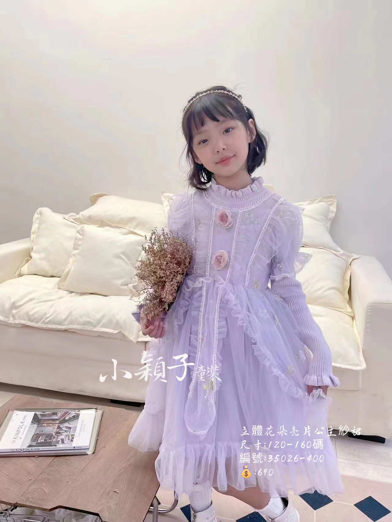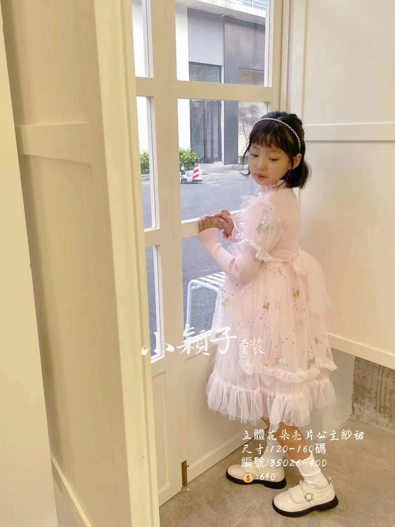 【台灣現貨】秋冬款 新款 長袖毛衣立體花朵亮片公主紗裙 連衣裙 數量