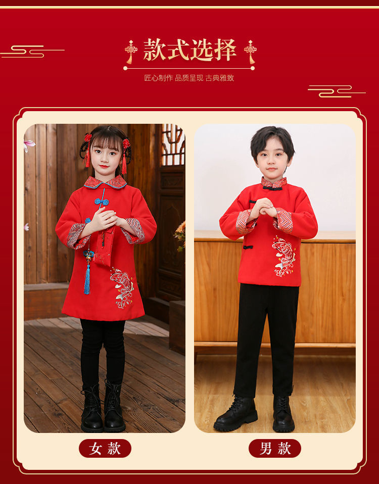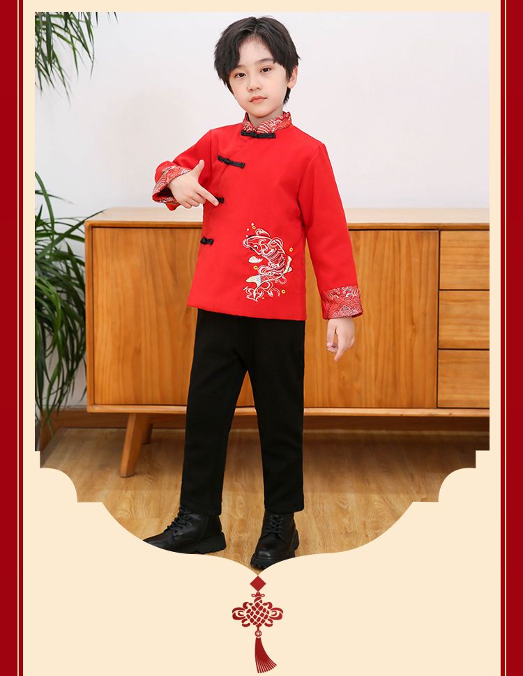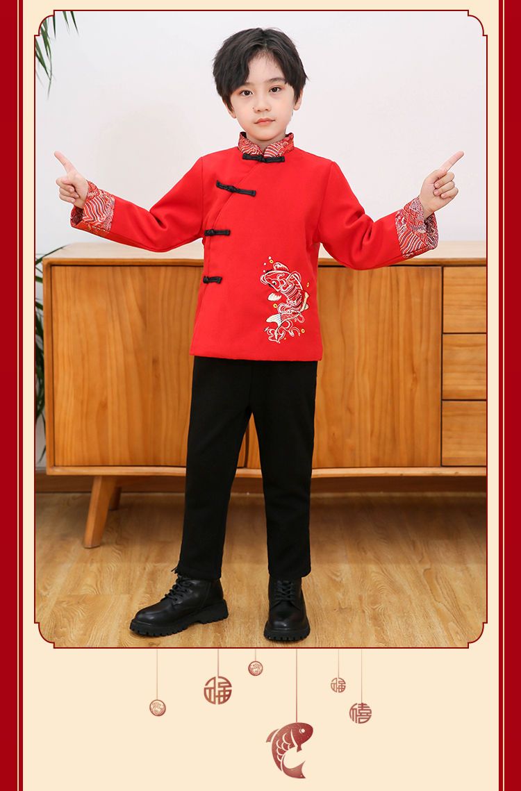 🔥【台灣現貨】🔥中國風 男女童 加絨唐裝 紅色錦鯉拜年服 820034-200 尺寸:100-160碼
