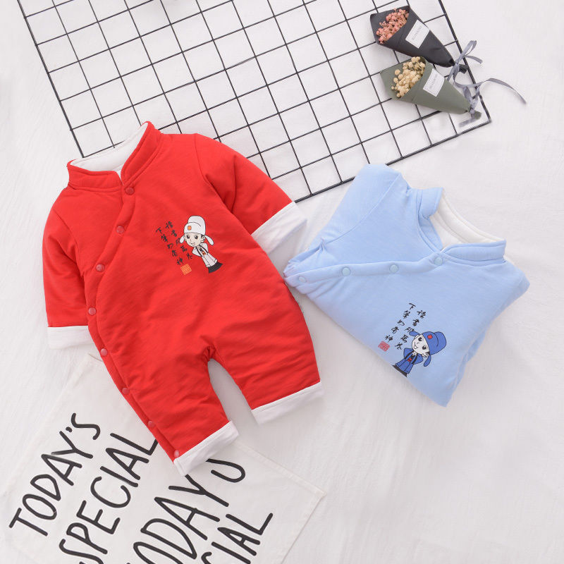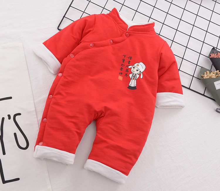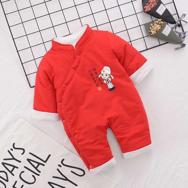 🔥【台灣現貨】🔥嬰幼兒 新生兒寶寶 喜慶 唐裝 夾棉哈衣 連體衣 820027-130