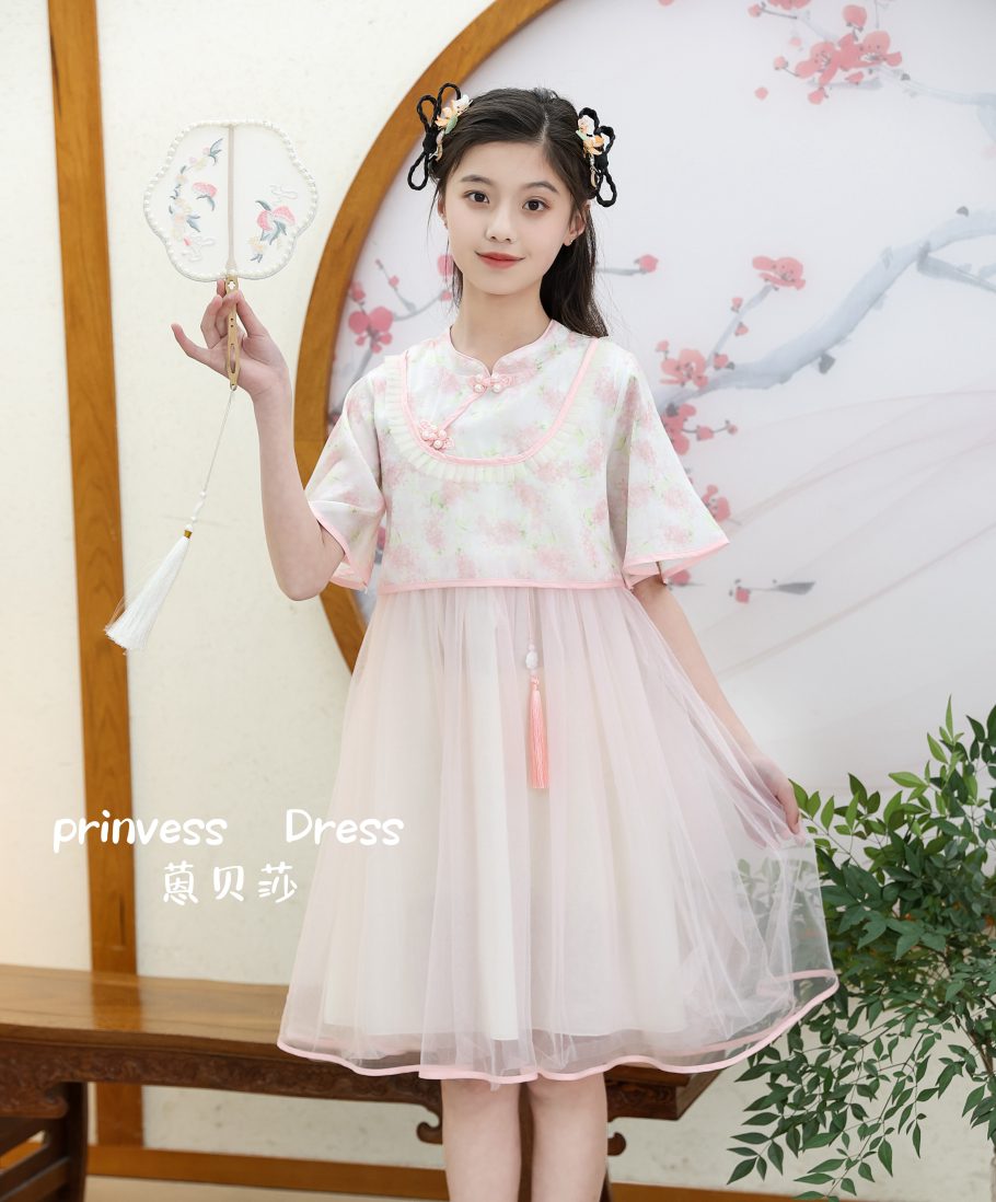 / 🔥【台灣現貨】🔥蒽貝紗珍珠盤扣花朵國風裙 550035-220