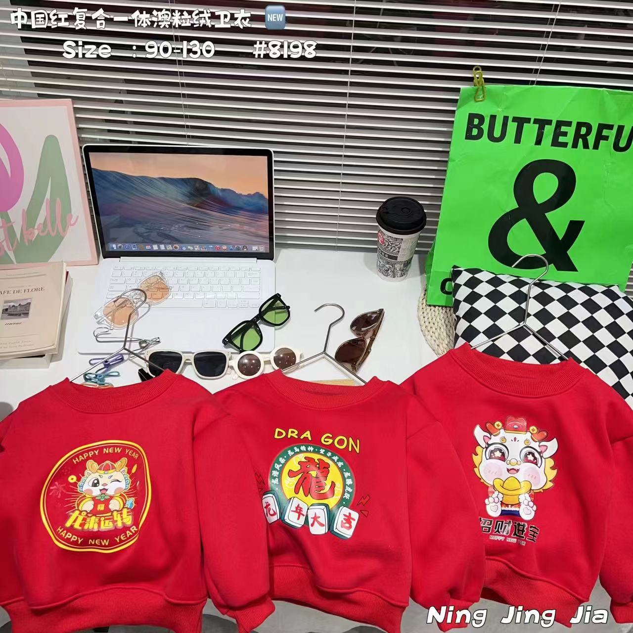 🔥【台灣現貨】🔥 2024年 龍年 招財進寶 中小童 男女童 中國紅復合一體奧粒絨年服 衛衣 800014-115