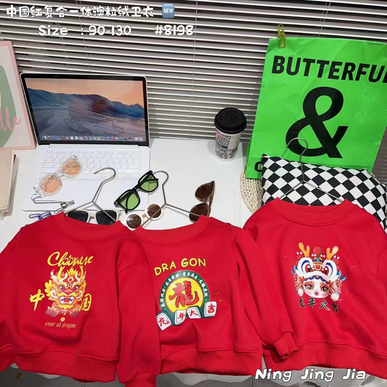 🔥【台灣現貨】🔥 2024年 龍年 龍年大吉 中小童 男女童 中國紅復合一體奧粒絨年服 衛衣 800017-115 顏色:紅色 尺寸:90-130碼